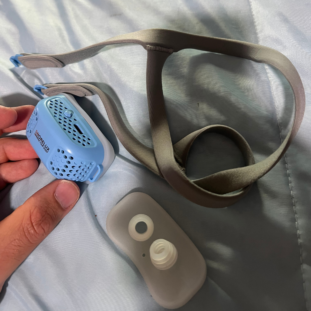 "I've dealt with snoring for years and hated the idea of using a full CPAP machine it felt like overkill. The NanoCPAP is exactly what I needed: small, simple, and super comfortable. I just pop it in, the strap keeps it in place, and I wake up feeling new born. My gf says I don’t snore at all anymore. Game changer."