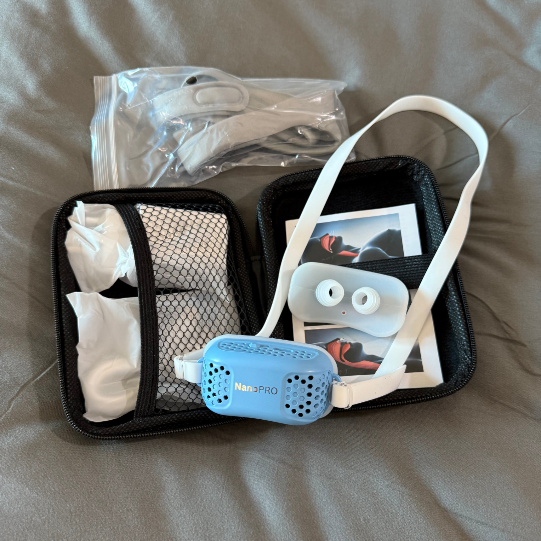 We can’t speak for other products, but NanoCPAP was custom-developed and extensively tested to address common issues like weak airflow, discomfort, and unreliable battery performance. Its compact design offers a quieter, more comfortable alternative to bulky systems. Each device includes two head strap options, two nasal cushion sizes, and a compact travel case, allowing users to adjust fit and comfort to suit their preferences.